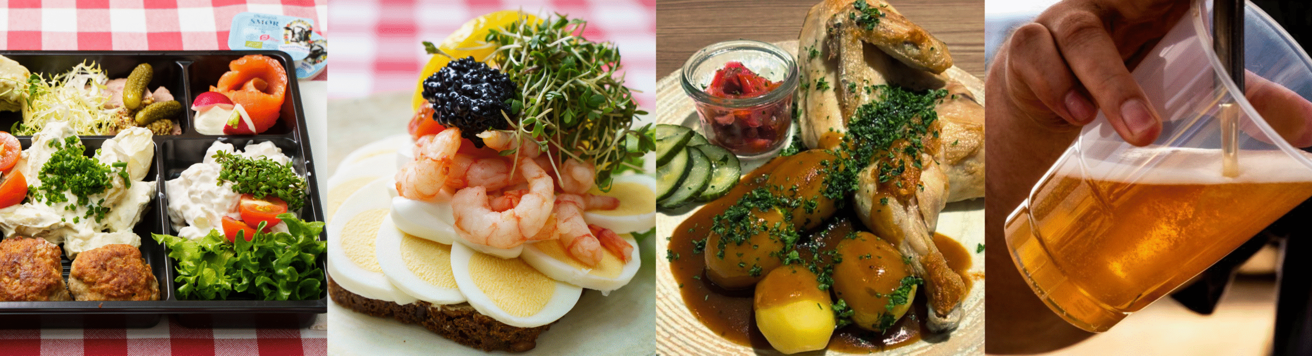 Spisning af smørrebrød foregår i vores hyggelige og stemningsfulde picnictelt ved borde og bænke. Det er Smag&Smil som leverer vores lækre smørrebrød, hvor der er kræset for detaljerne og den gode smagsoplevelse.